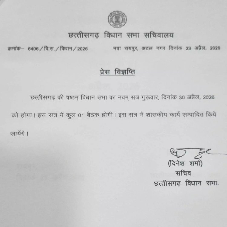 छत्तीसगढ़ विधानसभा का विशेष सत्र 30 अप्रैल को